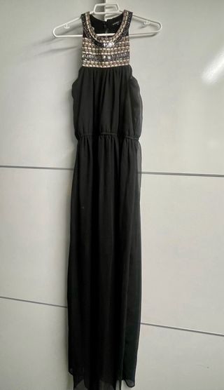 Vestido negro largo, perfecto para nochevieja o cualquier evento elegante, la tela tiene una caída increíble y aunque tenga los brillitos no pica, yo que soy de piel sensible lo agradezco pero igual que el resto de cosas que subo, ya no lo uso. Tiene la espalda abierta y es bastante elástico, además con la goma de la cintura hace muy buena figura sin llegar a sentirte embutida. Es de blanco y negro, se adapta de maravilla al cuerpo y tiene relleno en el pecho. Yo no me lo pensaría mucho ... ;)