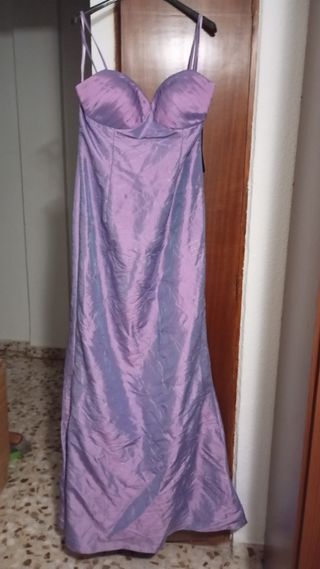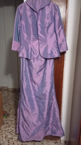 Elegante conjunto de vestido largo y chaqueta a juego, con un precioso brillo iridiscente. - Diseño sofisticado. - Ideal para eventos especiales como bodas o comuniones - Tallas, 42 - 44 - 46