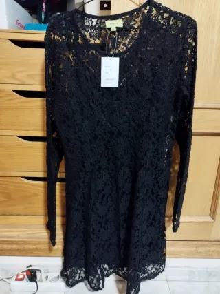 Vestido midi negro de Mango, talla M. Un básico elegante y versátil. Ideal para estas fiestas😍, celebraciones familiares, reuniones con amigos, cenas empresa, fin de Año....🥳🎉🥳🎉 - Diseño de manga larga. - Corte favorecedor. - Largo midi. - Tejido algodón