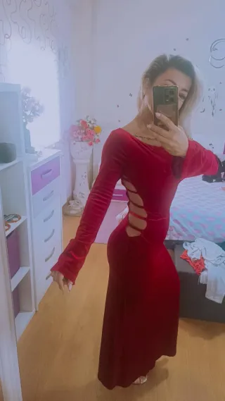 Vestido de fiesta largo en un vibrante tono rojo. Diseñado con tirantes finos y un escote en V. - Detalle de banda en la cintura. - Falda larga y fluida. - Tirantes con adornos. - Hecho de poliéster Estamos recaudando dinero para un viaje de estudios del instituto, en mi perfil hay mucha más ropa de todo tipo y tallas. Si os interesa, no dudéis en consultar.
