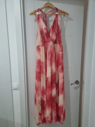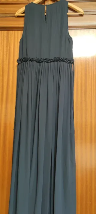Elegante vestido de fiesta largo. - Escote en V. - Tirantes finos. - Abertura lateral. - Falda fluida. El vestido es precioso. No lo he usado. Lo vendo porque tengo mucho pecho y no me quedó bien y no pude devolverlo a tiempo. Está con la etiqueta. No se ha usado.