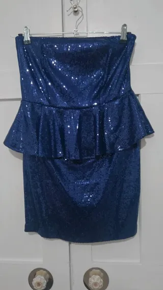 Vestido azul lentejuelas peplum XL