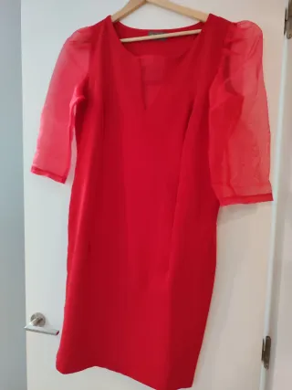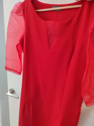 Precioso vestido Paulz en color rojo. Usado en una ocasión. Estiliza mucho la figura. Mangas de gasa. Medidas aproximadas: hombro 36.5cm, cintura 47.5 cm, cadera 53.5 cm, ancho entre axilas 59cm, largo 97cm.