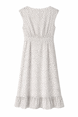 Vestido de tul con un delicado estampado de lunares, ideal para eventos especiales. - Diseño sin mangas. - Cintura marcada. - Falda con vuelo.