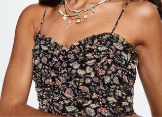 100% Algodón. Estampado de flores. Diseño corto y entallado. Cuello escotado. Tirantes finos. Detalles fruncidos. Abertura en la espalda. Forro interior. Cierre de lazo en la parte posterior. Colección fiesta y ceremonia. Imposible conseguir en tienda. Precio original 40€. Con etiquetas sin estrenar.