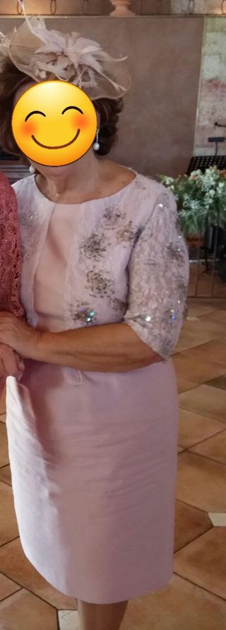 Vestido de fiesta de Laura Bernal. Talla 46. Color rosa palo. Media manga. Ideal para eventos. Usado solo una vez. Lleva un cinturón estrecho con un lazo de detalle.