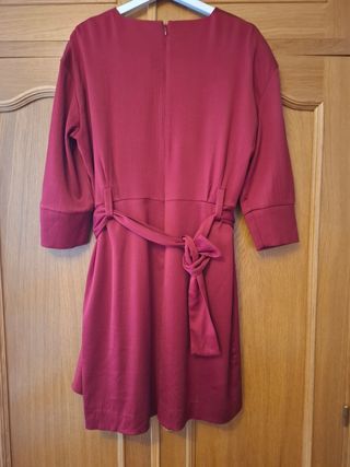 Precioso vestido de fiesta de la marca Hoss Intropia. Es de color rojo y tiene un diseño elegante y favorecedor. - Talla:46, hombro 42 cm, cintura 46 cm, largon95 cm, un poco elastico. - Manga tres cuartos - Cinturón a juego - Tejido fluido