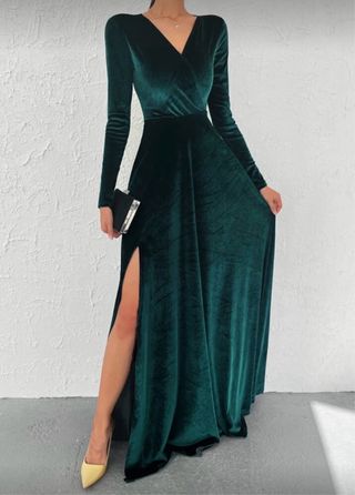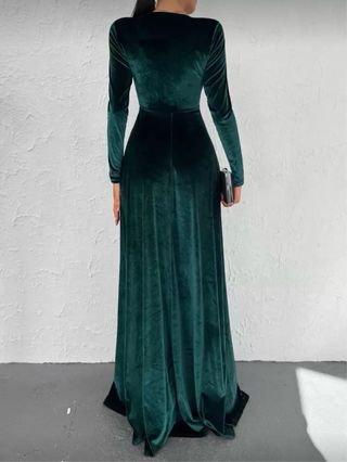 Vestido Terciopelo Verde con Abertura