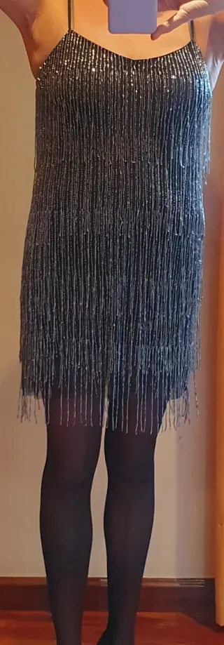 Vestido fiesta lentejuelas plata Zara Talla S