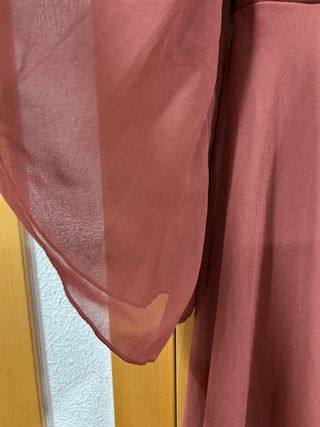 Vestido largo de fiesta con un bonito color rosa. - Diseño con escote en V. - Mangas tipo capa fluidas. - Cintura elástica. - Tejido ligero y vaporoso.