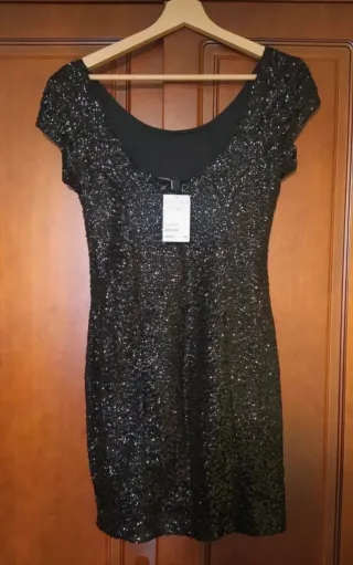 Vestido de fiesta con lentejuelas brillantes Talla xxs Nuevo con etiqueta sin estrenar. Gastos de envío por cuenta del comprador. No se hace contra reembolso - Manga larga. - Diseño ajustado. - Cierre de cremallera.