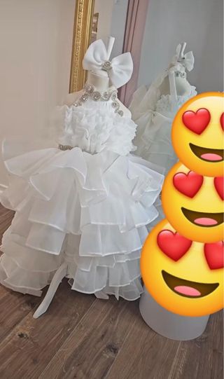 2 Vestidos de fiesta niña blanco con pedrería