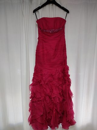 Vestido de fiesta color Frambuesa colección Aire Barcelona,palabra de honor,con detalle de pedrería,chal y doble cremallera,talla 38,puesto una vez,en perfecto estado,ideal para eventos especiales y bodas.Si vives cerca,puedes probartelo