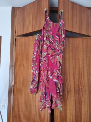 vestido en tonos fucsia con foulard a juego, talla 40 como nuevo.