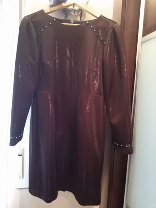 Vestido fiesta . talla 40. Sin estrenar. Color granate brillo.