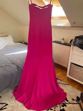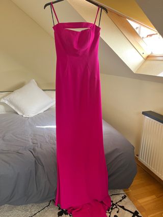 Elegante vestido de fiesta largo en color fucsia, ideal para eventos especiales de la colección VANIGLIA Verawwang X Pronovias NUEVO A ESTRENAR, sin arreglos Preciio en tienda 655€ - Diseño con tirantes finos. - Escote pronunciado con detalle. - Corte recto y favorecedor. - Tejido de alta calidad.
