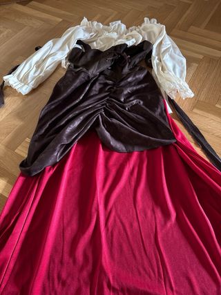 Disfraz de tabernera con un diseño inspirado en épocas pasadas. Ideal para fiestas temáticas o eventos. - Incluye vestido con corpiño y falda. - Mangas abullonadas. - Detalle de encaje en el corpiño.