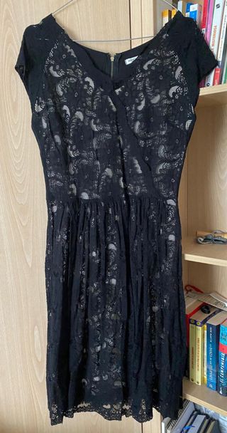 Vestido Mango Negro Encaje Fiesta Coctel