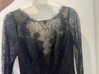 Precioso vestido de fiesta. Con adorno de encaje y pedrería. Hecho a mano. Equivale a una talla 38-40. Prácticamente nuevo