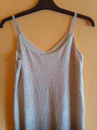 Vestido de fiesta con lentejuelas brillantes. - Diseño con tirantes finos. - Acabado metalizado. - Tengo de la talla M y L