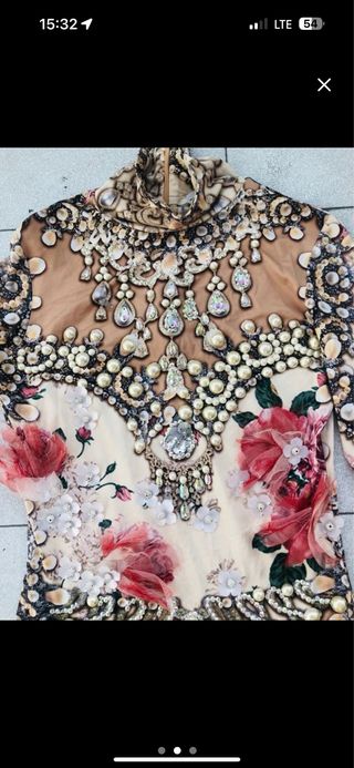 vestido precioso con piedras de efecto! elastico, se ajusta muy bien da mas talla y dismimula muy bien le faltan piedras, de alli el precio! es vestifo de disenador con precio alto