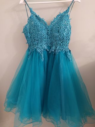 Vestido de fiesta azul con pedrería talla 38-40. Solo se uso una vez, está limpio solo tiene la falda arrugada de estar en la bolsa doblada.