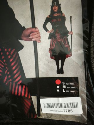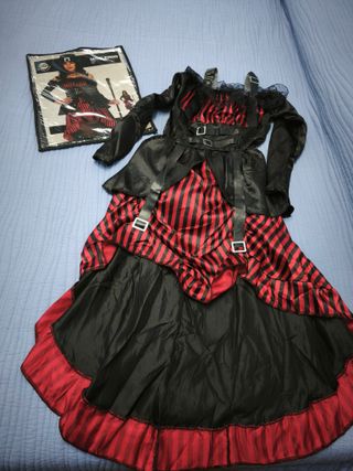 Disfraz de estilo Steampunk para mujer. También sirve para temática gótica. Tiene un tejido ligero y es muy cómodo. - Diseño de rayas rojas y negras. - Detalles con hebillas y cinturones. - Cinturilla elástica. - Falda con volantes. - Marca: FIESTAS GUIRCA - Fabricado en España SOLO INCLUYE EL VESTIDO. En perfecto estado. Utilizado solamente 1 vez. Va en su embalaje original. HAGO ENTREGAS EN PERSONA, PERO TAMBIÉN ENVÍOS POR WALLAPOP.