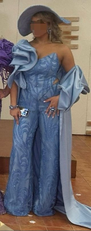 Confenionado por Angela Lozano Con pamela forrada en piedreria y complementos,talla 36/38 (Precio negociable) - Cortse completo en piedreria. - Pantalón ancho de piedreria entero. - Sobre capa con cola. - Incluye sombrero a juego de la misma piedreria.
