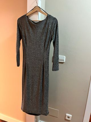 Vestido fiesta plateado talla S
