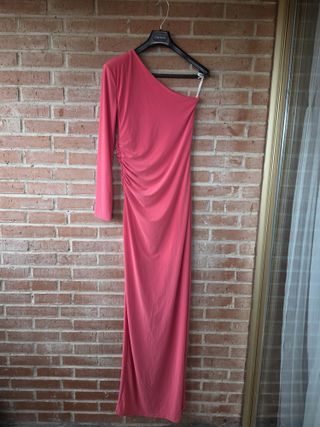 Elegante vestido largo de la marca Juan Bernal colección verano 2025. - Diseño de un solo hombro. - Detalle de fruncido en el lateral. - Abertura lateral en la falda. - Un solo uso, como nuevo - Talla S. Bajo arreglado para altura 165cm+9cm de tacón. -Con forro. Elástico y muy cómodo.