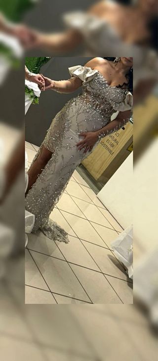 Vestido de fiesta plateado y blanco