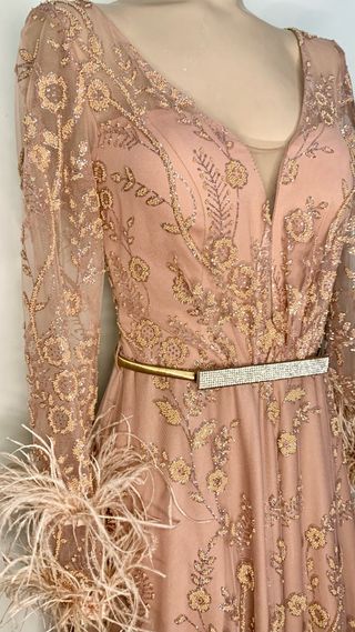 Vestido de fiesta beige y plateado