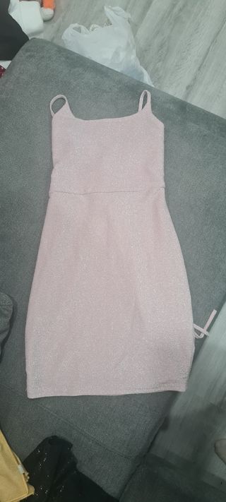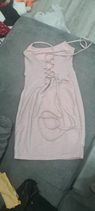 vestido rosa corto con la espalda al aire. talla s. solo una puesta