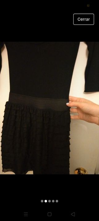 Yo me lo he puesto de fiesta. Queda muy elegante porque está ajustado por arriba, el cuello es barco, la espalda es más baja y los volantes abren la cadera. Cinta elástica ancha en la cintura. Y tejido elástico en general. Se entrega limpio y bien empaquetado.✨