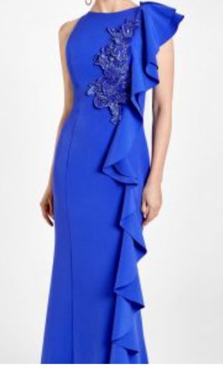 Vestido de fiesta en azul con volante. Tejido poliéster y elástico. Sin estrenar