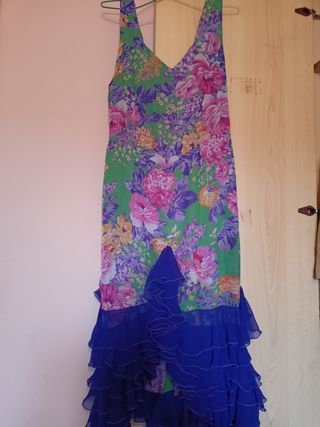 Vestido favorecedor y ligero. Puede servir para una fiesta, de bata rociera e incluso de traje de flamenca. Sin estrenar. Precio no negociable