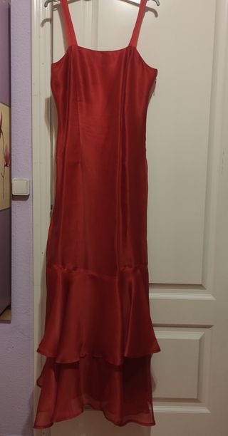 vestido de fiesta con la espalda descubierta y de cola.larga con volantes TL