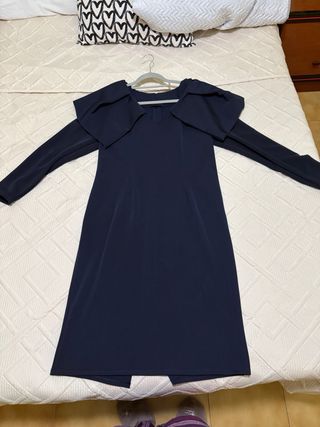 Vestido de corte elegante con un diseño llamativo en la parte frontal. Ideal para un evento como boda, bautizo o comunión - Mangas largas. - Volantes decorativos en cascada. - Cremallera oculta en la espalda. En perfecto estado. Puesto sólo una vez. Comprado en el Corte Inglés.