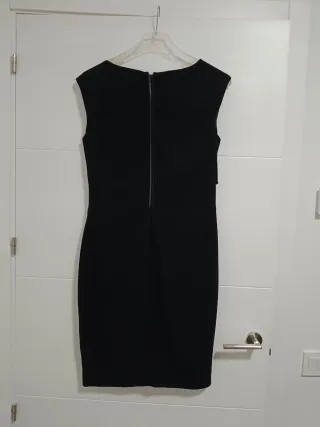 Precioso vestido negro para ocasiones especiales, de la marca Mango. Es una prenda elegante y sofisticada, ideal para eventos. - Diseño de vuelo con pliegues. - Manga tres cuartos con volantes. - Cinturón de raso a juego.