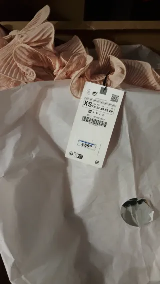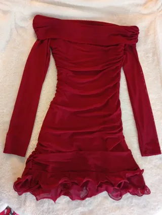 Vestido de fiesta con corpiño y falda de volantes. Pone talla 42 pero me lo hicieron más pequeño. Medidas: 31 x 67
