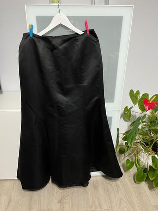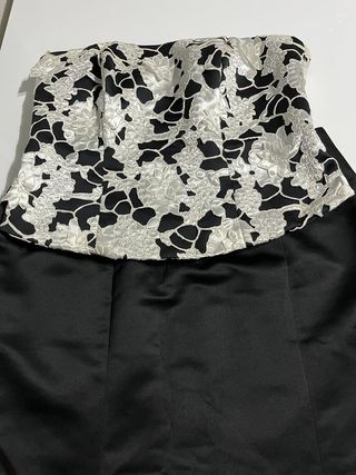 corpiño encaje blanco y falda larga negra con tul en el volante, talla 48