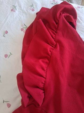 Vestido de fiesta rojo con un diseño elegante y moderno POR SOLO 5€. - Corte asimétrico. - Detalle de volantes. -Una manga si y otra no.