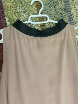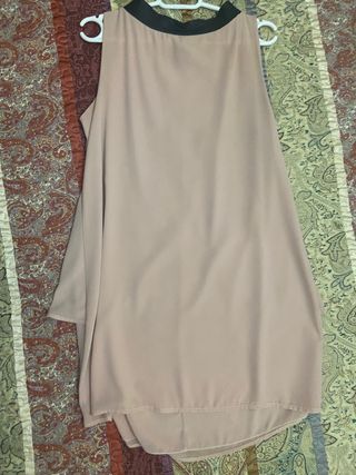 vendo vestido de color rosa, corto, con cuello en color negro. Perfecto tanto para un evento como para una cena informal. muy vaporoso y con volantes en la parte posterior. En perfecto estado. puesto una vez. Talla M