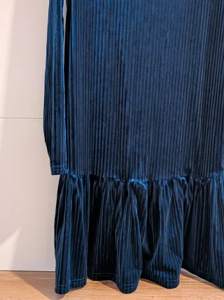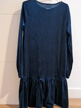 Vestido de manga larga con un diseño elegante y moderno en tela de terciopelo. Tiene un corte a la cadera muy favorecedor y es comodísimo. Talla S/M. No he llegado a estrenarlo. Ideal para estas fiestas. #navidad #nochevieja - Tejido de terciopelo con textura acanalada. - Detalle de volantes en la parte inferior. - Manga larga.