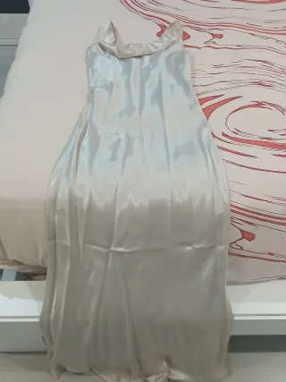 ✨ Vestido dorado satinado con volante – Ideal para eventos ✨ Deslumbra en tu próxima ocasión especial con este vestido dorado satinado de estilo elegante y sofisticado. Su escote con volantes grandes aporta un toque espectacular y muy chic, mientras que los finos tirantes estilizan la figura y añaden un detalle delicado. El tejido tiene un brillo precioso, perfecto para bodas, fiestas o noches importantes. Es una prenda que destaca por sí sola: femenina, moderna y con ese efecto “wow” que no pasa desapercibido. ✔️ En excelente estado ✔️ Corte favorecedor ✔️ Color dorado/champagne super elegante ✔️ Ideal para eventos, invitadas...
