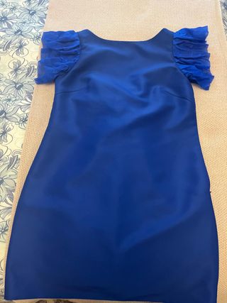 Vestido fiesta azul eléctrico, mangas abullonadas