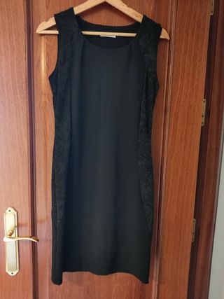 Precioso vestido negro de la marca Promod, talla 36. Es un vestido de corte ajustado, sin mangas, con detalles de encaje en los laterales. - Perfecto para ocasiones especiales, fiesta, graduación...
