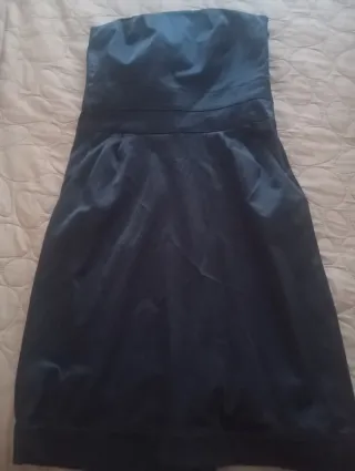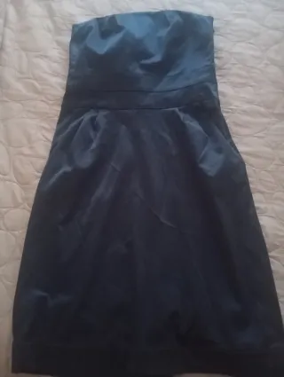Vestido de fiesta elegante, ideal para eventos especiales. - Diseño sin tirantes. - Tejido satinado. - Cintura marcada. - Con bolsillos