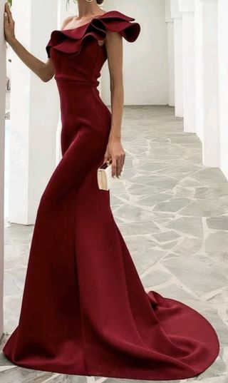 Vestido corte sirena von volante. Tal cual imagen. Color vino