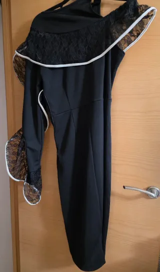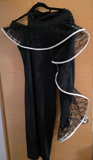 Elegante vestido negro con detalles únicos. No indica talla en el vestido pero debe ser la talla S-36 - Tirantes con adornos dorados. - Diseño con capas. - Cremallera en la espalda. Ideal para las noches de fiesta!